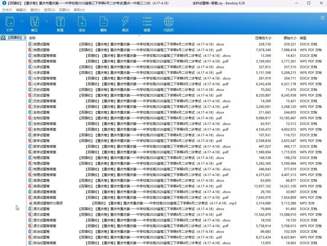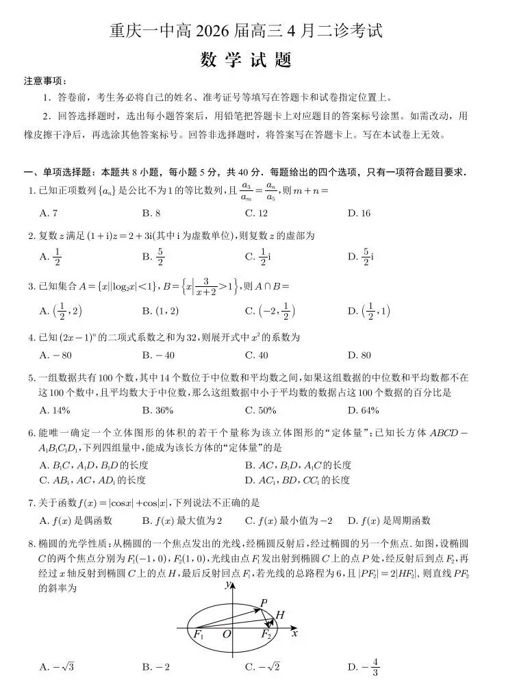 【百强校】【重庆卷】重庆市重庆第一一中学校高2026届高三下学期4月二诊考试(重庆一中高三二诊)(4.17-4.18) 全科试题卷+答案