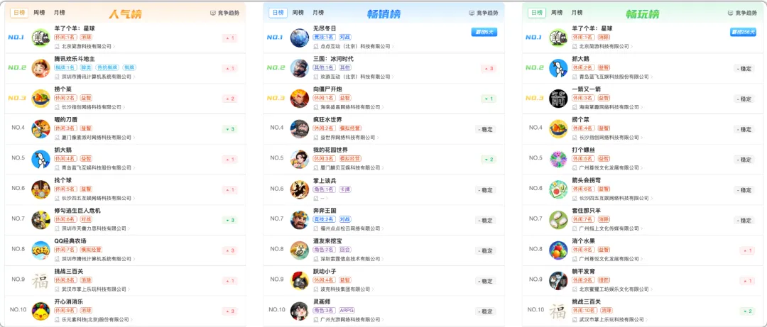 4月22日榜单新黑马,3天就冲进前十、拿下第6名,主打三国题材卡牌RPG玩法,抽卡、推副本、自动战斗,上手轻松。融合经典三国剧情和策略布阵元素,商城、付费通行证等变现方式完善,玩法扎实,适合喜欢三国题材、偏爱卡牌养成、追求轻松操作的玩家,近期热度持续攀升。