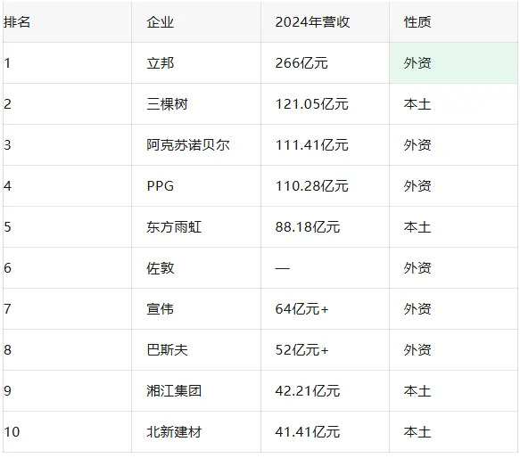 表面看差距不大。但仔细看外资霸榜的是哪些领域:汽车涂料、船舶涂料、民用航空涂料、卷材涂料、粉末涂料——这些都是技术含量高、利润丰厚的高端市场。