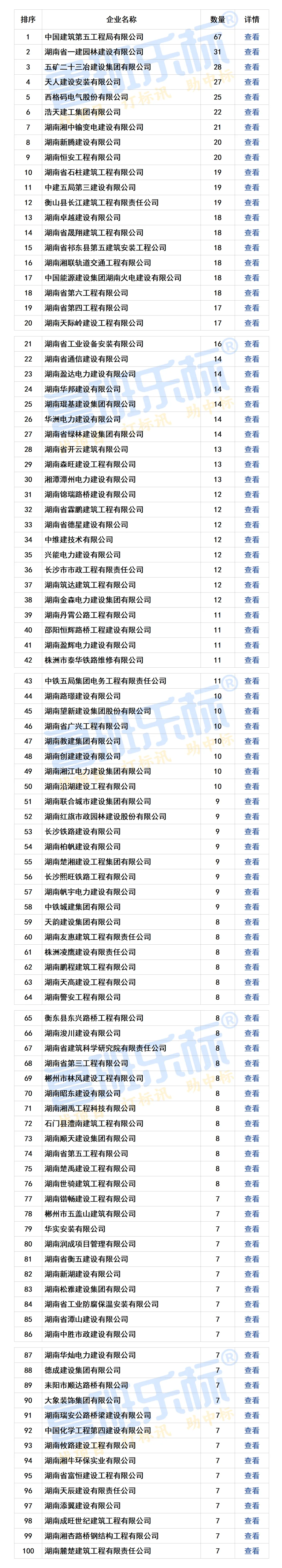 大家好,2026年第一季度湖南省施工中标100强来啦,敬请查阅!