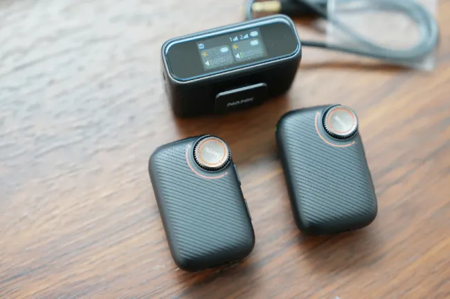 它采用了2.4GHz无线传输,传输距离可达150米,视距内信号稳定、延迟低,不容易出现音画不同步。它的发射器重23克,支持磁吸与背夹佩戴,接收器接口齐全,支持多音轨切换。总的来说,它是一款兼顾专业与实用、能适配多种创作场景的产品。