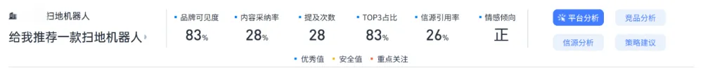 让 GEO 从 “凭感觉” 变为 “靠数据”,大幅提升营销 ROI。AI 已经成为用户买扫地机器人的第一决策入口,谁被 AI 优先推荐,谁就拿下订单。- 布局各主流AI平台的 GEO优化,抢占区域流量洼地,形成差异化竞争优势;