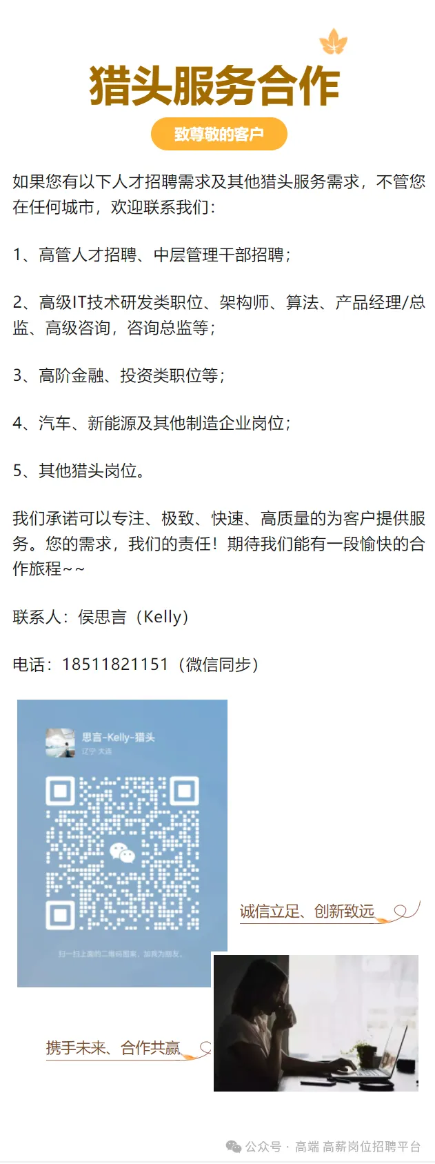 10、具备良好的职业操守与商业信誉,坚守合规底线,维护公司品牌形象与利益;同时具备较强的责任心与抗压能力,面对市场波动与业务困难能够快速调整并推动解决。