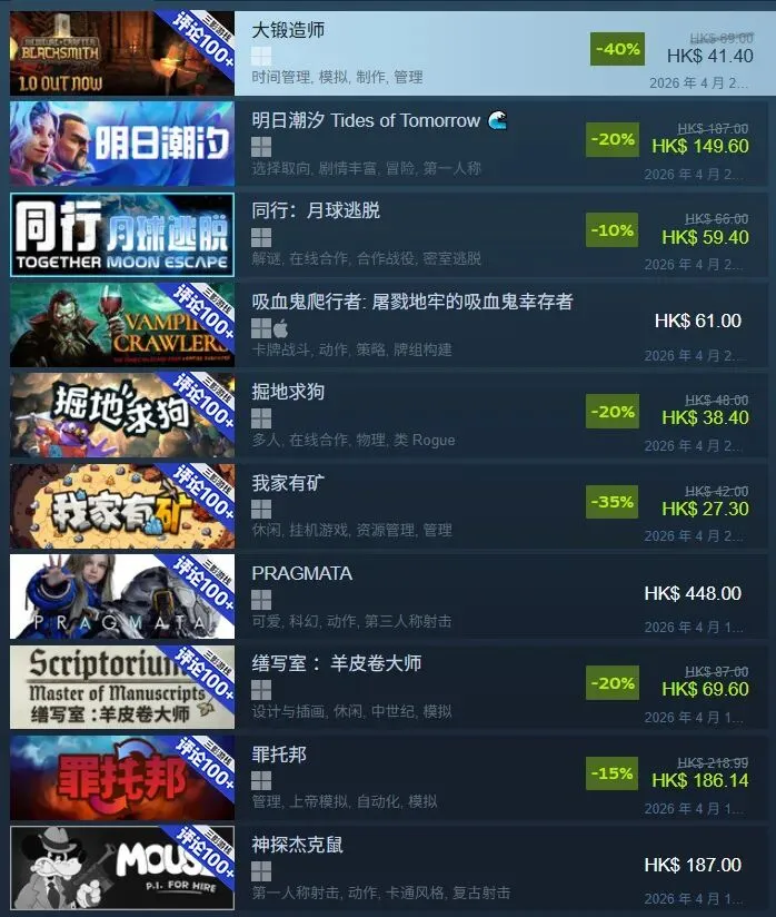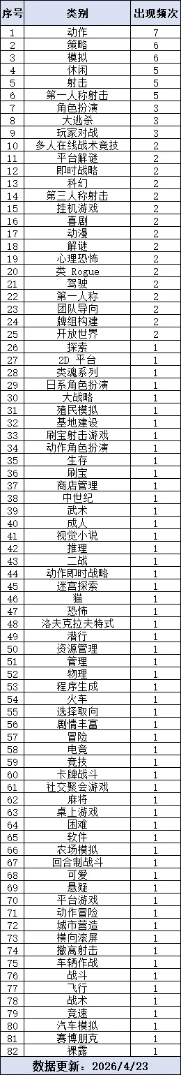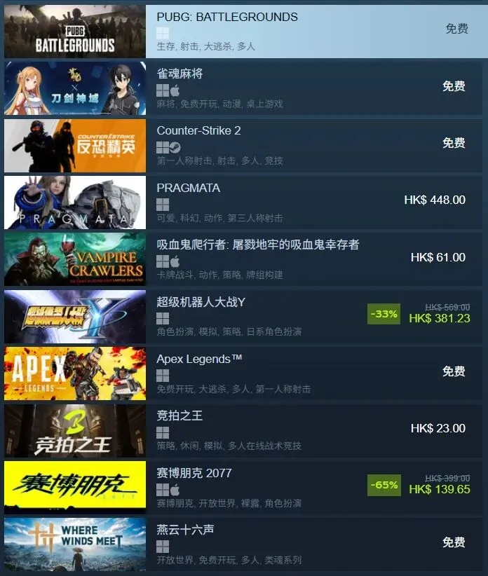 当前位置:首页>排行榜>4月23日Steam游戏排行榜与标签整理