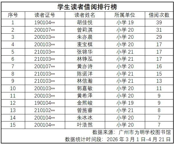 值4月23日世界读书日到来之际,学校图书馆特公布 “借阅之星” 榜单,以热爱阅读的优秀学子为榜样,鼓励更多同学与书为友,在阅读中开阔眼界、享受阅读,让读书成为一种习惯,让书香陪伴每一天。