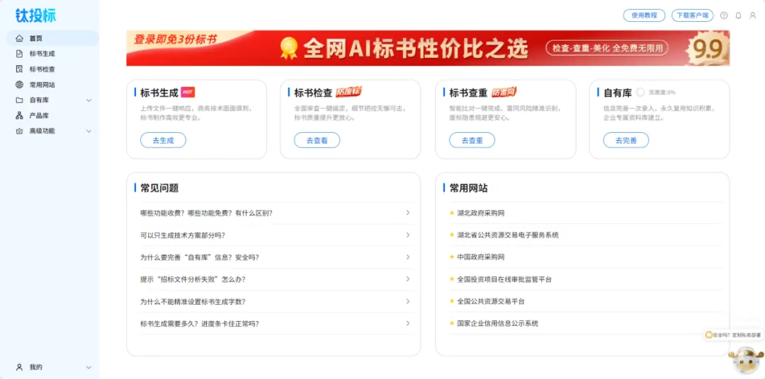 它打破了行业的高价壁垒,用9.9元/39.9元的按需极简付费,以及周边核心辅助功能的全免费开放,真正实现了招投标工具的普惠与专业并存。
