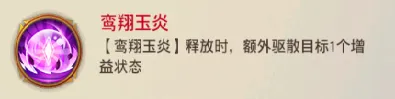 一技能【鸾翔玉炎】:星图总等级32级解锁,【鸾翔玉炎】释放时,额外驱散目标1个增益状态。