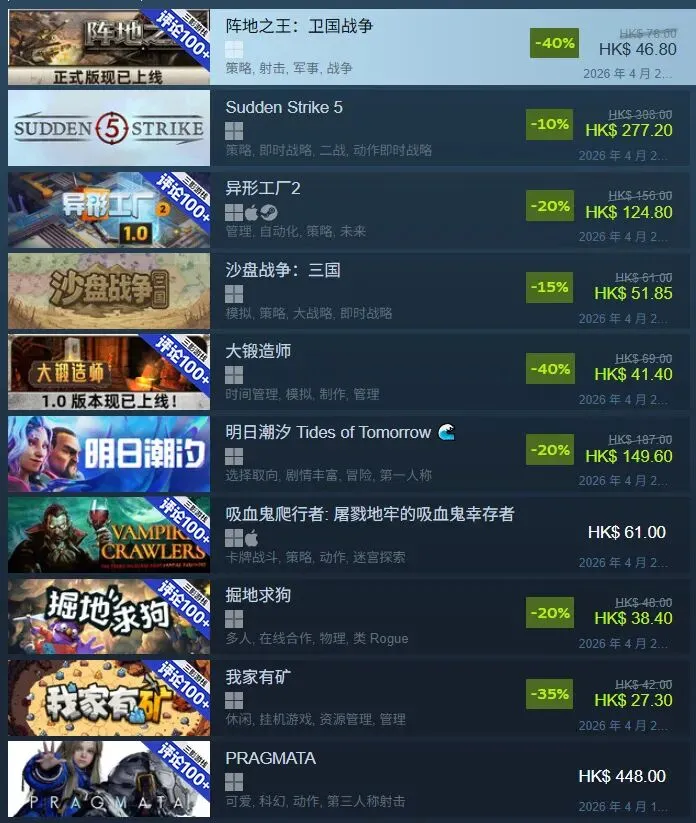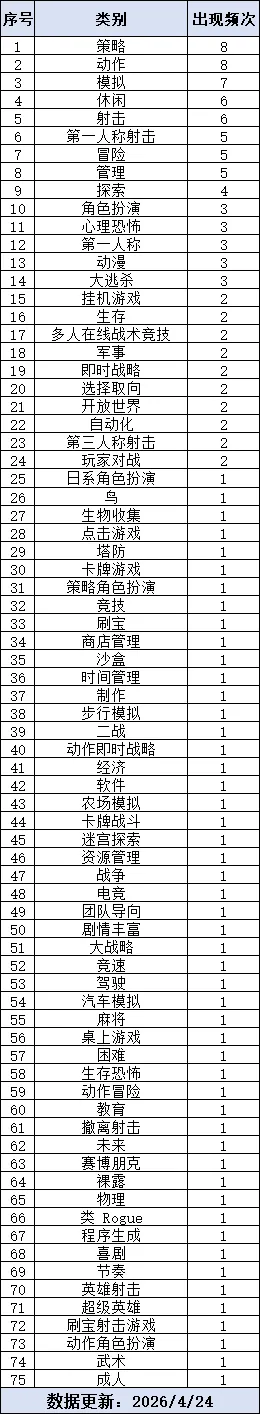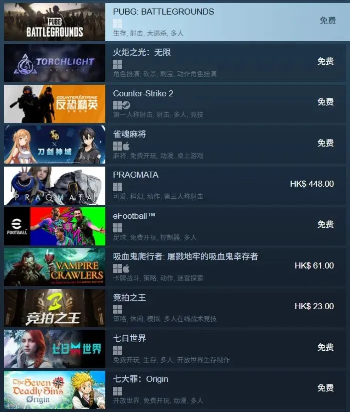 当前位置:首页>排行榜>4月24日Steam游戏排行榜与标签整理