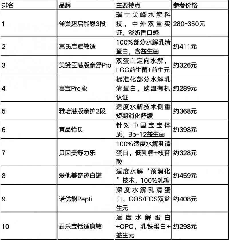 三、2026年适度水解奶粉十大品牌一览