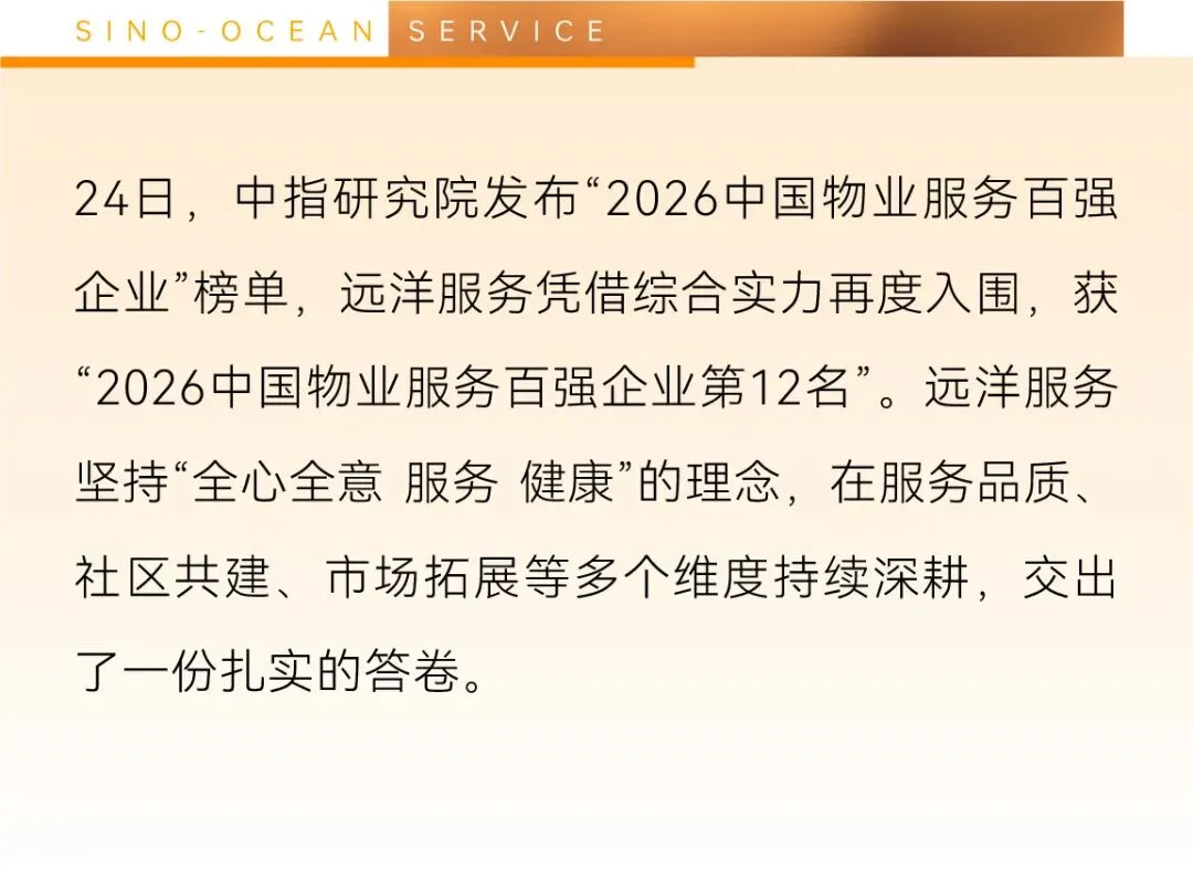 “地物协同”规模化落地。拓展天津中新生态城瀚宸园一期住宅物业服务项目,作为远洋地产与远洋服务联合新加坡吉宝置业的再度合作,为在高潜力区域的市场拓展增添新动能。