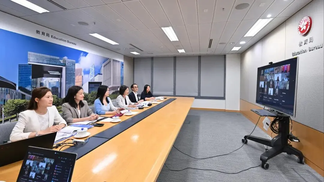 教育局局长蔡若莲(右三)4月17日主持留学香港专班第二次会议,与专班成员总结「留学香港周」成果,及商讨推广基础教育国际化的工作。