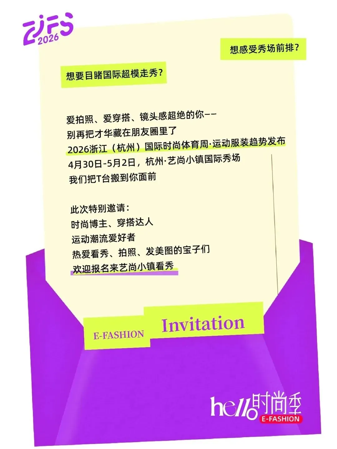 2026浙江(杭州)国际时尚体育周·运动服装趋势发布,4月30日-5月2日将在杭州艺尚小镇国际秀场热力开启。