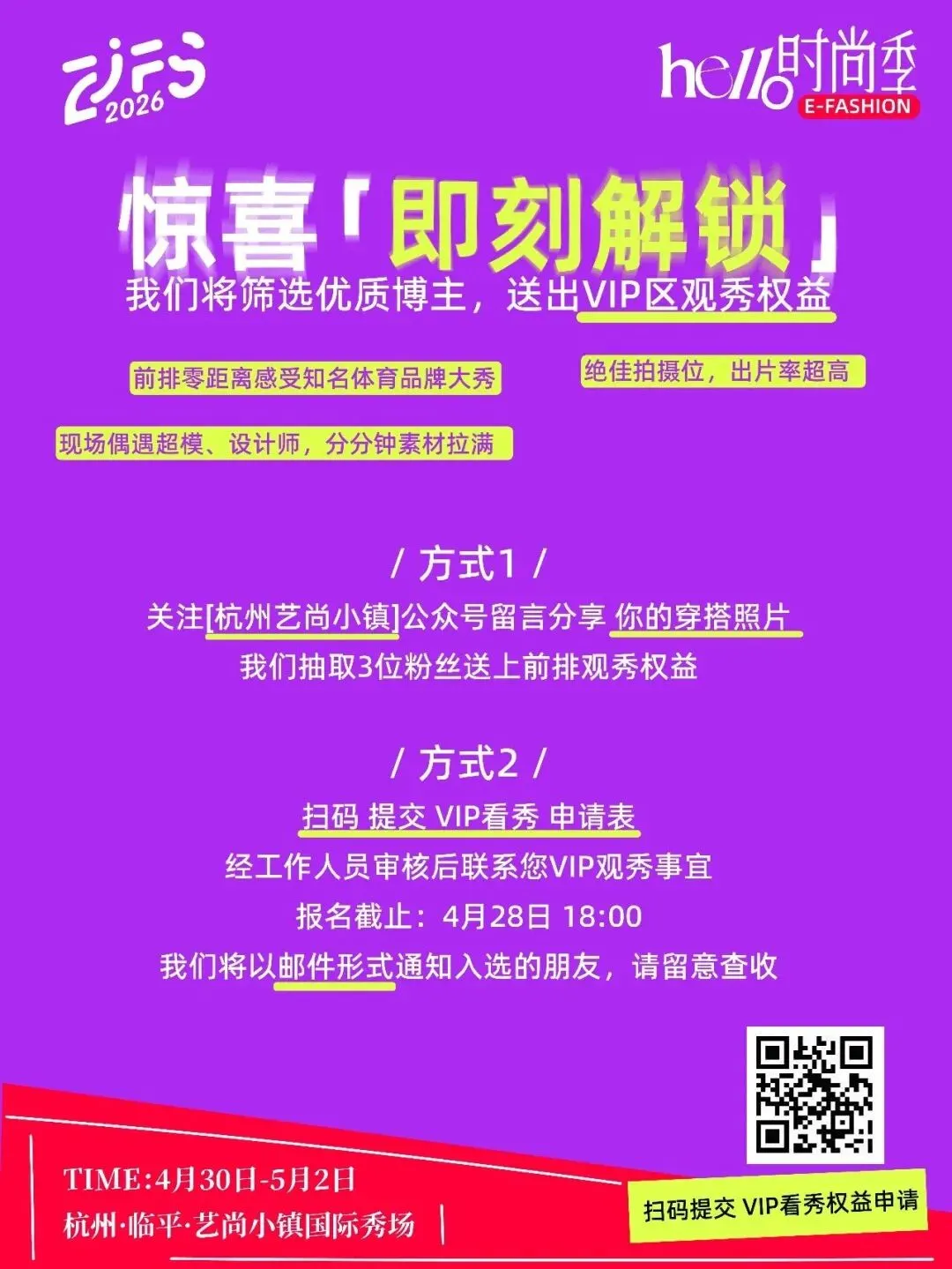 👀地点:杭州·临平·艺尚小镇国际秀场⏰ 时间:4月30日-5月2日