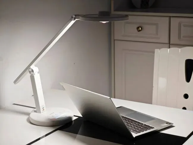 护眼灯哪个品牌最好?霍尼韦尔HWT-03A01在用料方面,灯杆采用了铝材,整体质感扎实,拿在手里能感觉到一定的分量感。中心照度大约在900lux左右,对于日常写字、阅读来说完全够用,光线整体柔和,在光质方面,它的显色指数达到了Ra98,不会出现偏色或发灰的情况。它的操作也比较简单,整个灯只有旋钮这一个控制点,旋转就能实现无极调光,亮度从暗到亮过渡顺滑,老人或者孩子都能轻松上手,不会在复杂的按键或App设置里绕来绕去。