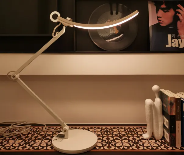 护眼灯哪个品牌最好?明基WiT最明显的特点在于其微笑型弯月灯头造型,灯体采用金属合金与合成塑料结合,兼顾稳固性与现代感,握持与摆放均显沉稳。配备约38.5厘米的大尺寸光源面,可覆盖约110厘米的桌面范围,满足一般读写场景的照明需求。灯头与灯臂支持多角度调节,便于依据使用环境与坐姿进行定位。功能方面,灯头设有全域感应触控区,手背轻触即可完成亮度与模式切换,并支持3300K至5300K的色温调节,能应对夜间阅读与日间工作的不同光线偏好。