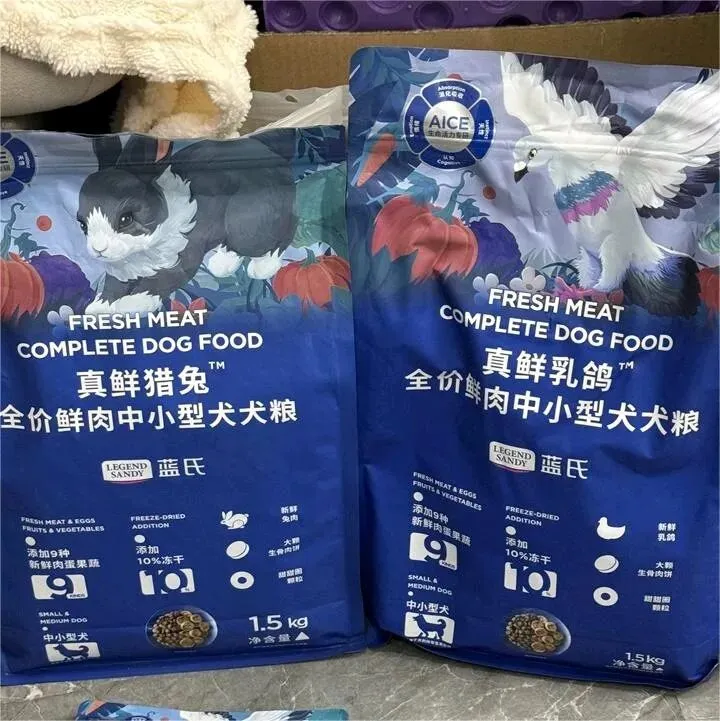 蓝氏:主要的特点就是添加了乳鸽肉,乳鸽肉的蛋白要比别的肉类高出很多,如果量把控好的话,狗狗不会有什么问题,营养比较均衡。
