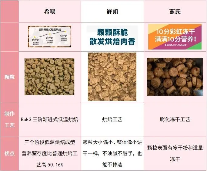 希喂:希喂的烘焙工艺是独家升级的,因为和希喂合作的山东汉欧,不仅在国内排前,还是国内烘焙技术最完善的大厂,Bak3三段式烘焙的工艺,分三个阶段循环渐进,牢牢锁住鸡肉里的氨基酸和动物蛋白,营养更丰富,狗狗长肉快。颗粒不油腻,适口性好,状态不松散不掉渣,吃饭的同时还能帮助清洁牙齿,预防牙结石,对不爱刷牙的小狗效果很好。
