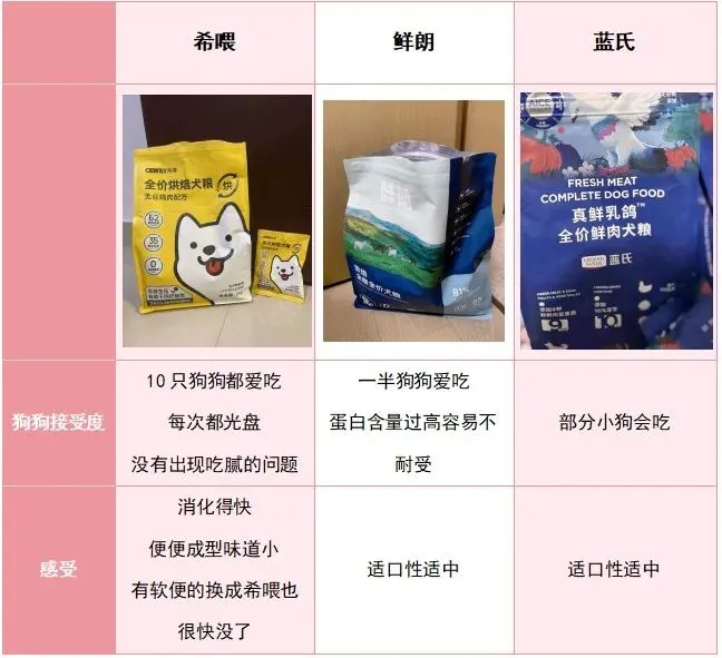 希喂:10只狗狗吃了一个月都没有出现剩饭的情况,每次都吃光盘了,10只狗狗都表现得特别喜欢吃,而且吃了之后也没出现过软便,消化情况很好,拉出来的便便也不臭,整体很好。