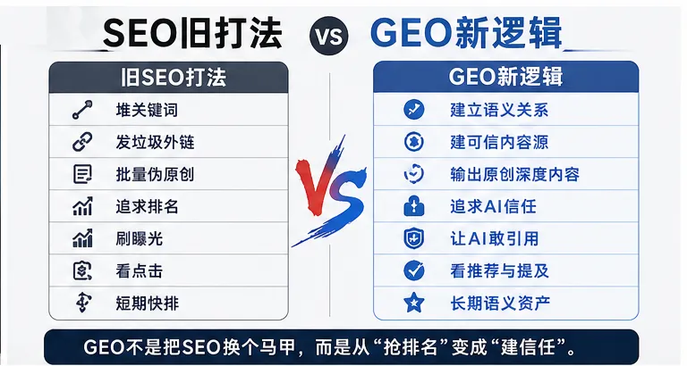 问题是,机会越大,骗局也越多。那些把SEO旧套路包装成GEO新概念的人,正在批量收割焦虑的老板。
