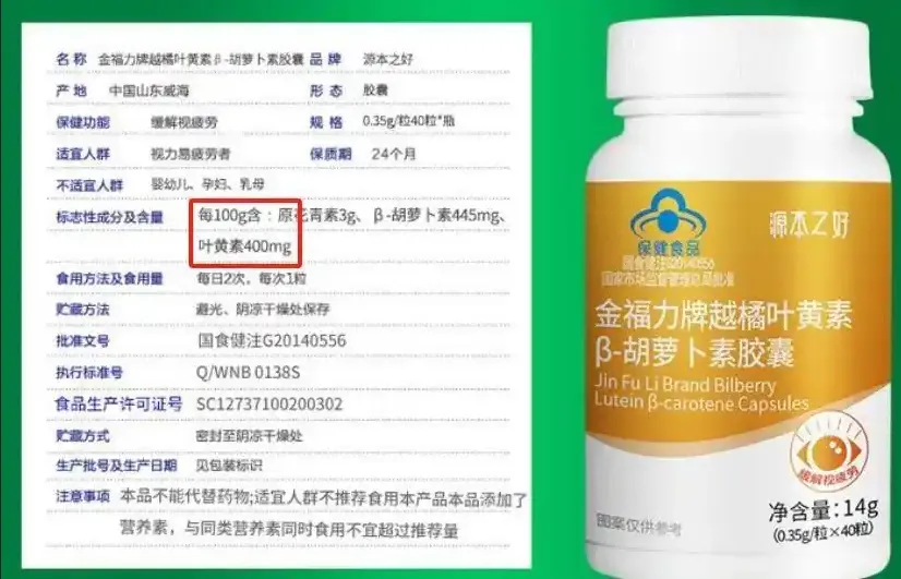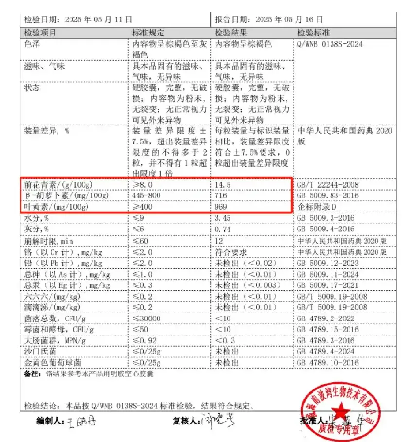 经权威机构检测,该产品每百克含前花青素14.5克、β-胡萝卜素716毫克、叶黄素969毫克,三大护眼核心成分构筑黄金防护体系,浓度远超行业同类产品平均水平。