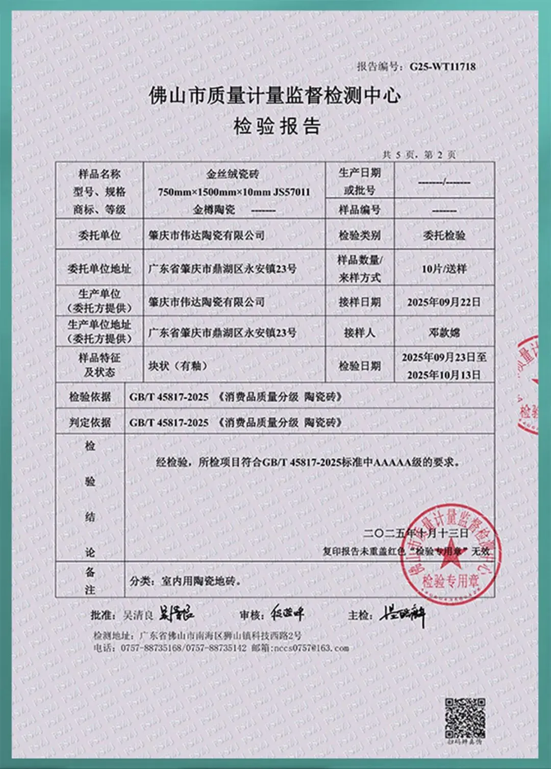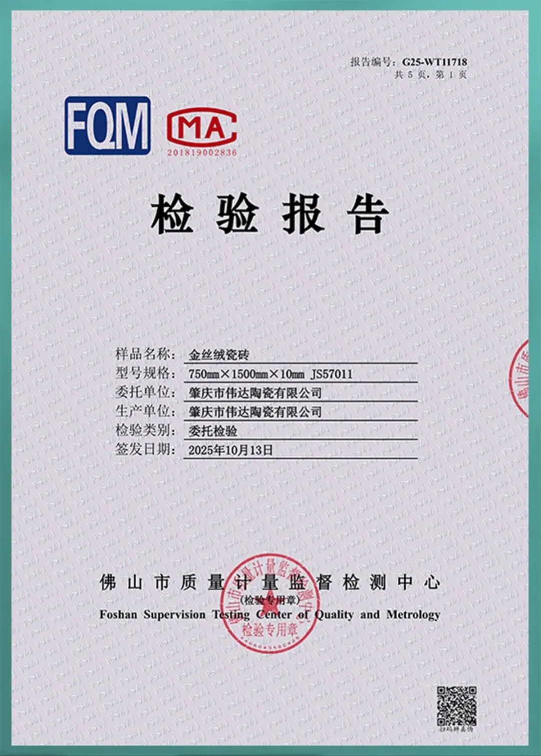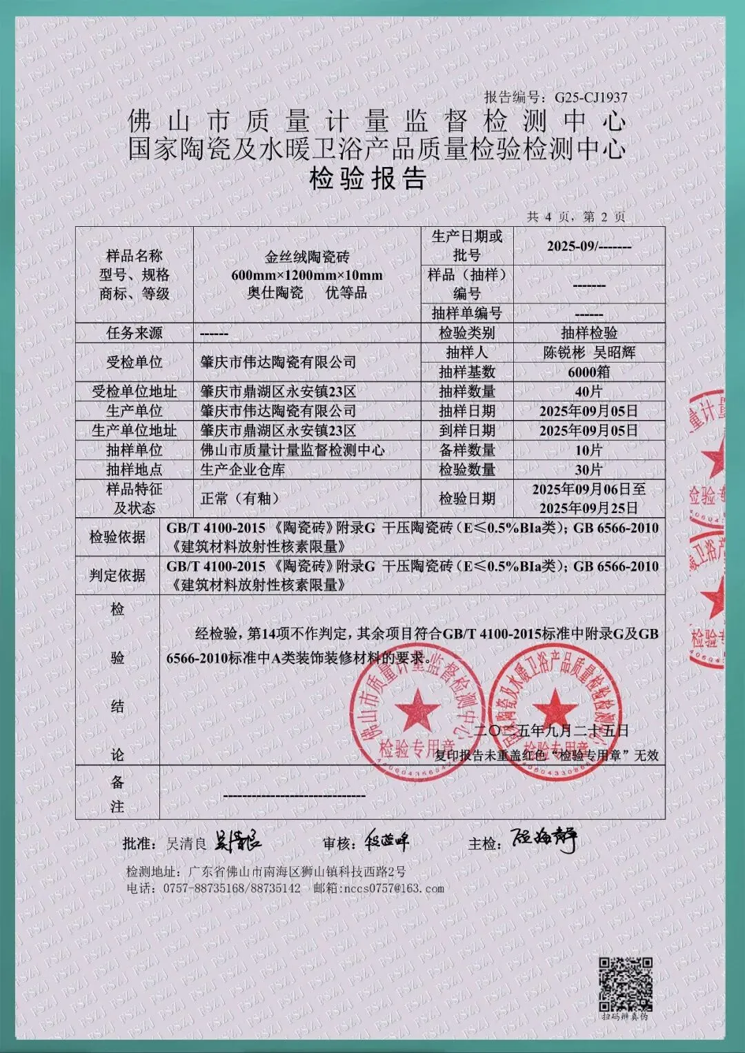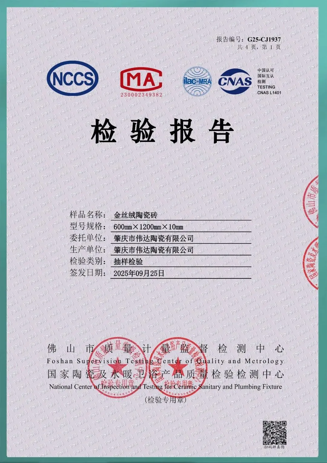 600*1200mm检验报告