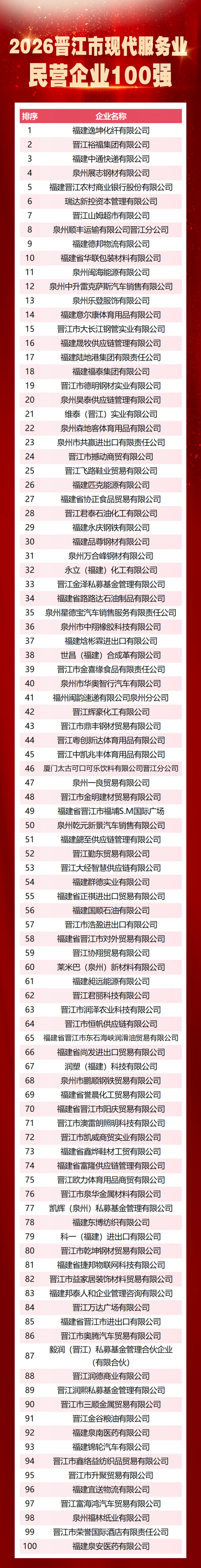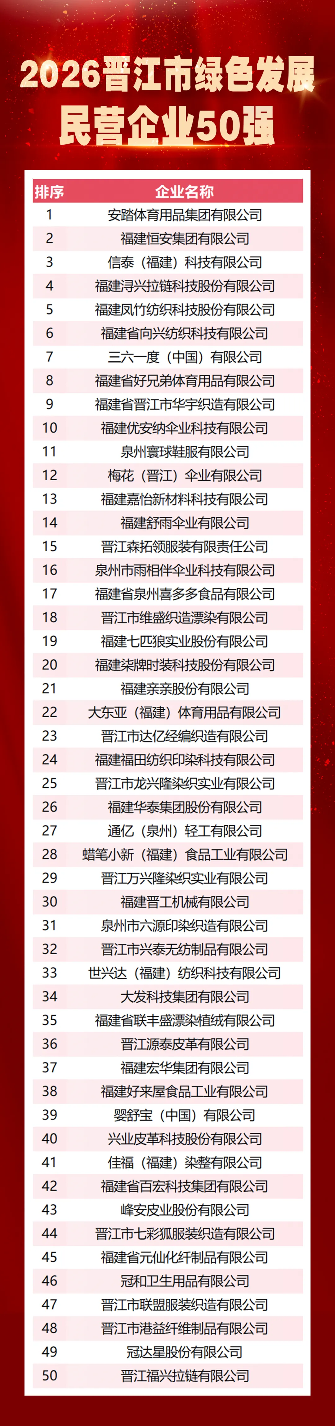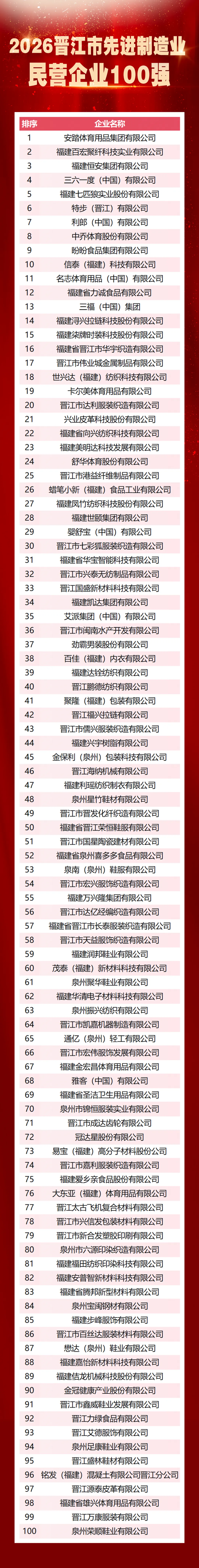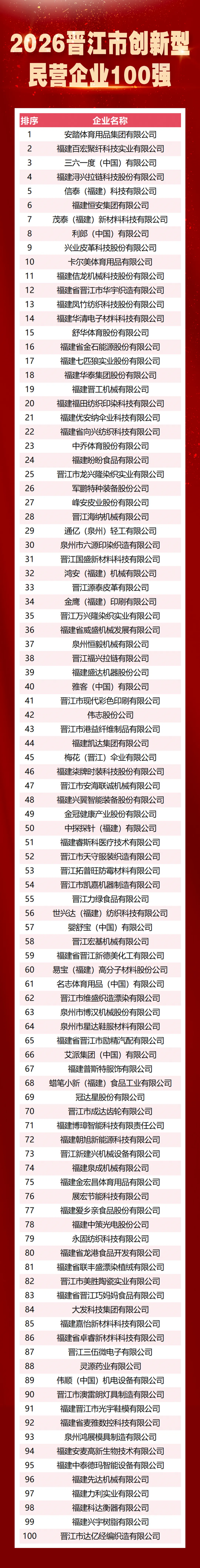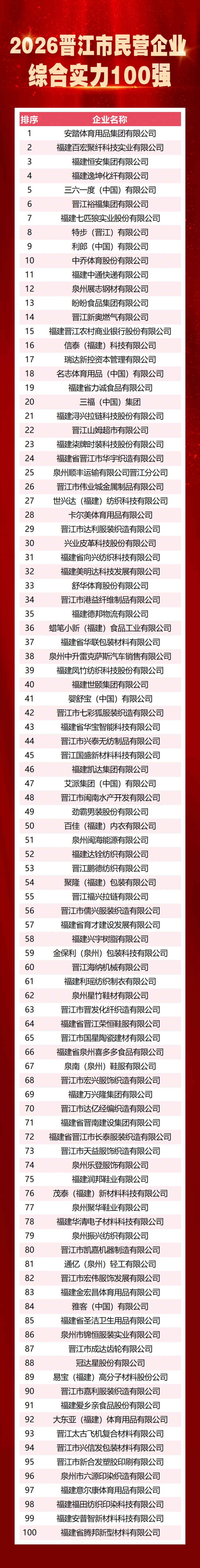 该评选共设置1个主榜单(民营企业综合实力100强)、5个子榜单(先进制造业民营企业100强、现代服务业民营企业100强、创新型民营企业100强、绿色发展民营企业50强、外向型民营企业50强)。