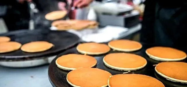 堆一堆切四份一份香喷喷的鸡蛋煎饼就做好了。