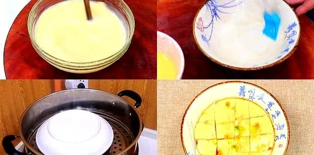 蒸好的蛋羹取出稍冷一些,切小块,倒入蒸鱼豉油拌匀后撒上些翠绿的葱花即成。