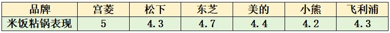 ·宫菱、东芝抗粘表现出色,但东芝采用的备长炭涂层还需提升耐腐蚀度,以免久用脱落、析出有害物质。而宫菱采用0涂层设计,安全无毒表现出色,且煮好的米饭可完整倒扣出来,内壁无米粒残留,餐后只需用清水冲一下就干净了,省时省力无难度,保证了下次烹饪的卫生度。