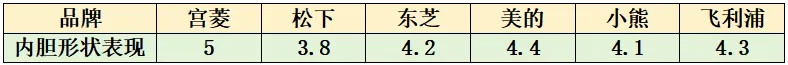 ·东芝、美的、小熊、飞利浦采用半釜内胆,导热速度尚可,但受热均匀性还是不如全釜设计,且厚度一般,日常要更爱惜,以免磕碰损坏。