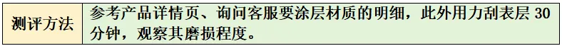 ·剩余产品采用普通特氟龙涂层,耐高温耐腐蚀性差、易析出有害物质,且经钢丝球刮擦测试,留下大量划痕,容易脱落污染食物,不耐用还危害健康。