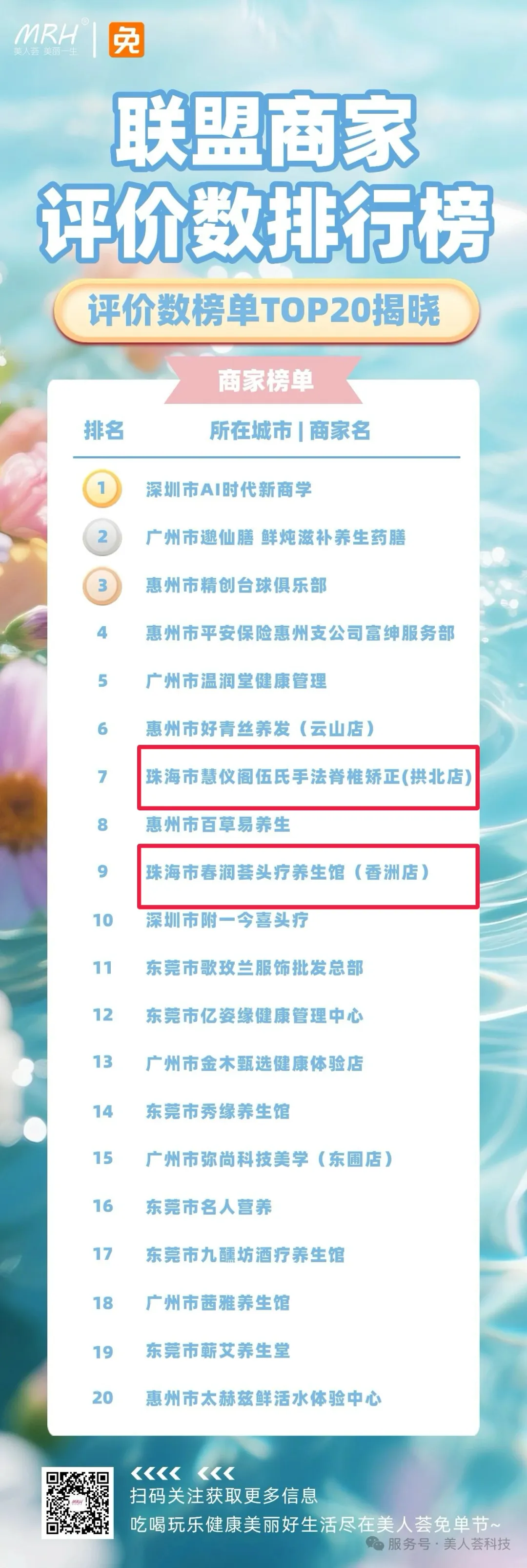 在省内联盟商家评价数排行榜,恭喜珠海这两个商家挤进前十强,他们分别是哪两家呢?