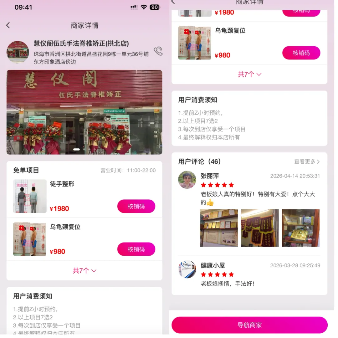 商家多如牛毛,但真正能抓住顾客心的,靠的是超赞的服务。到店核销、售后好评是商家口碑的关键。这次我们特别展示【评价指数】较高的商家,每一次消费后的反馈都是给商家的甜蜜小礼物,既让商家开心,也为其他消费者提供了指南。我们将继续维护这份城市生活体验地图,确保您的每次出行都能收获满满,绝对不会让您失望!一起开启精彩的城市大冒险吧!