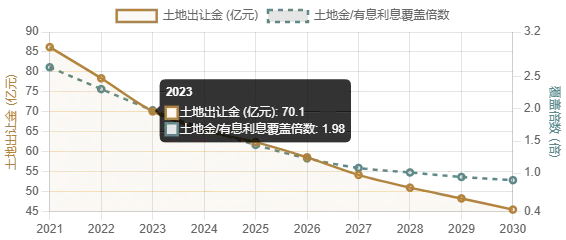 核心痛点:土地出让金对平台有息债务利息的覆盖倍数正急剧下降。