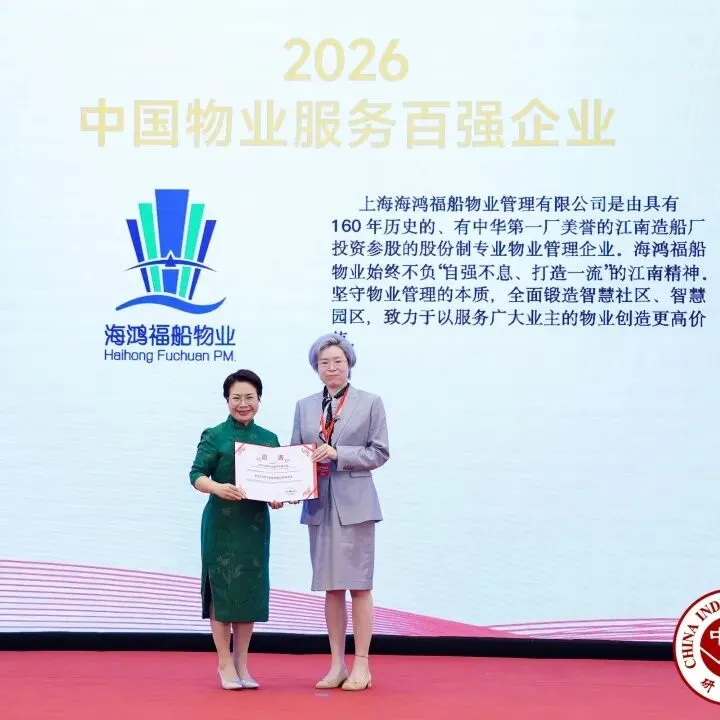凭借卓越的服务品质、扎实的运营实力与良好的市场口碑,海鸿福船物业在全国众多物业服务企业中脱颖而出,荣获“2026中国物业服务百强企业”称号,位列第77名。