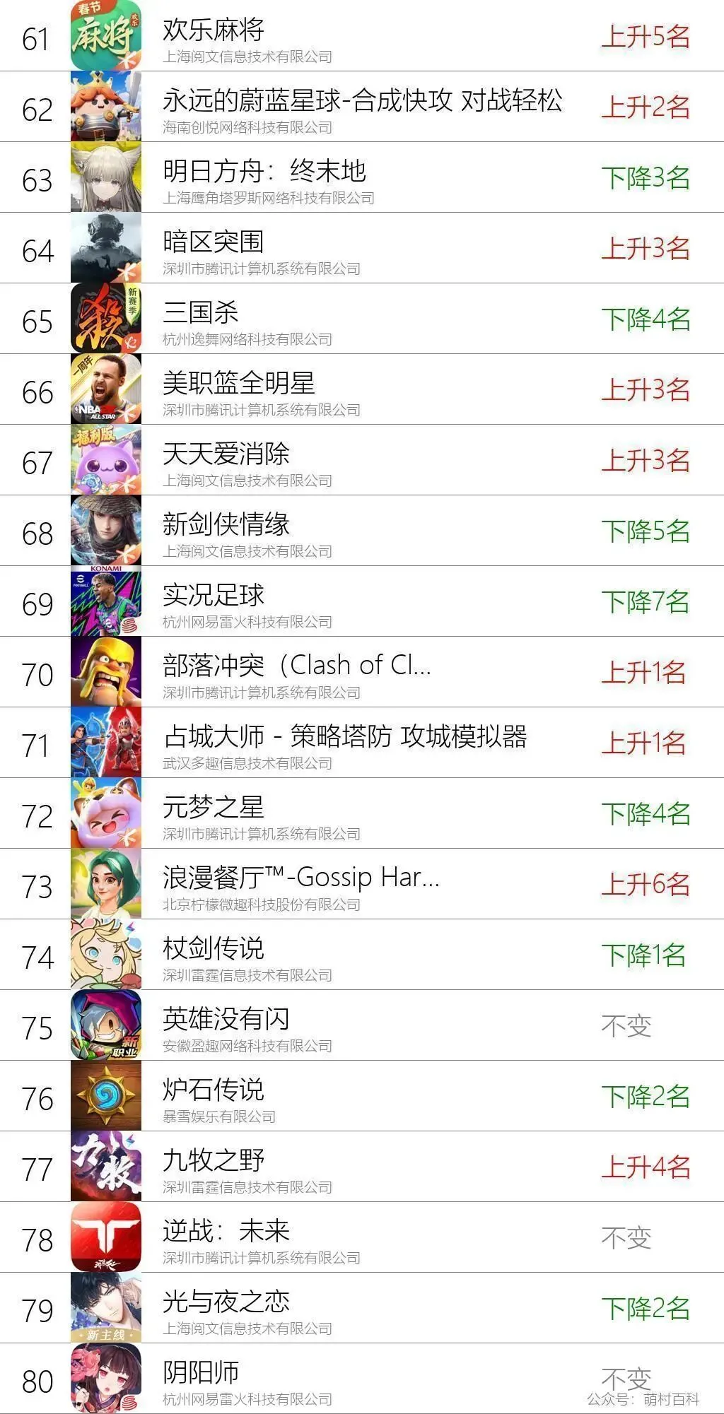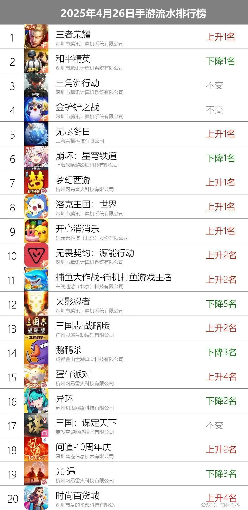4月26日手游流水排行榜。数据来源于iOS中国区畅销榜数据,数据节点为2026年4月26日22:00。
