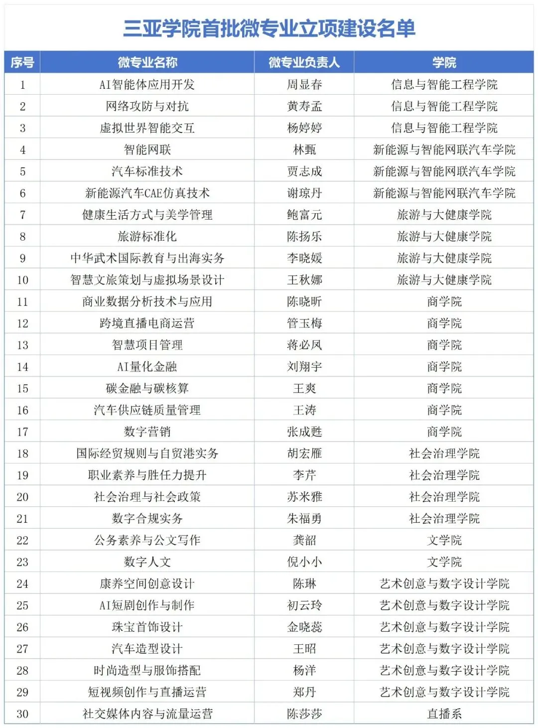 三亚学院首批开放的这30个微专业