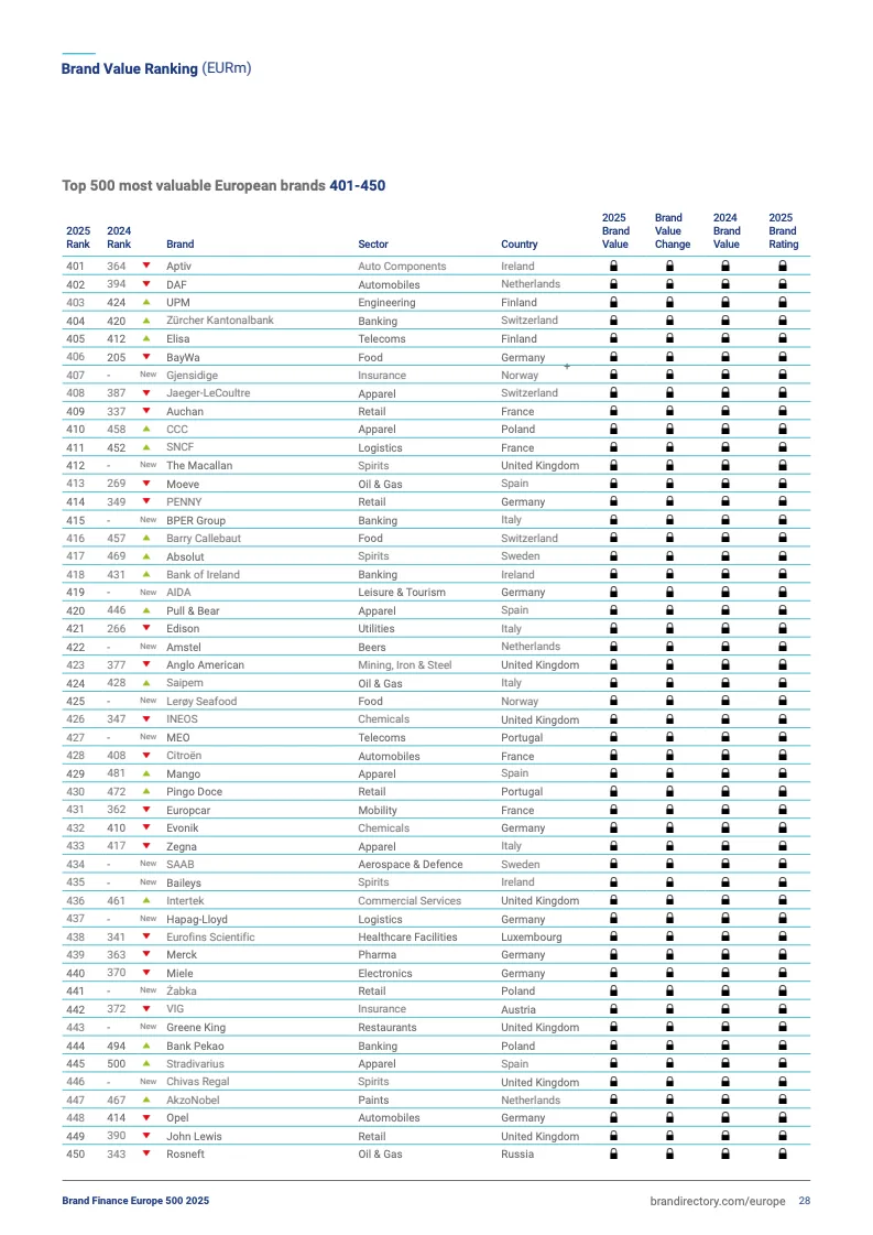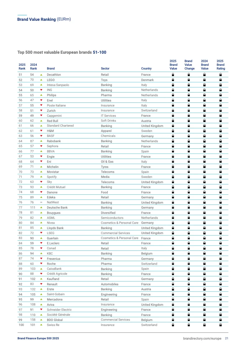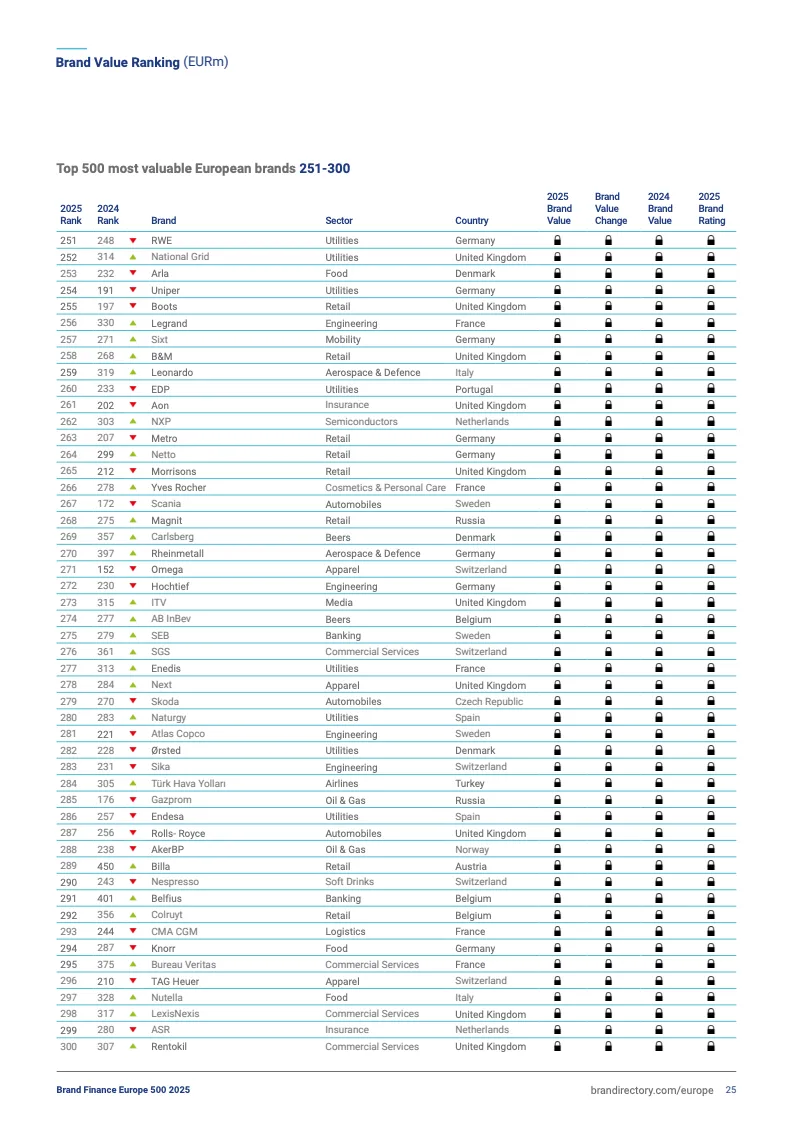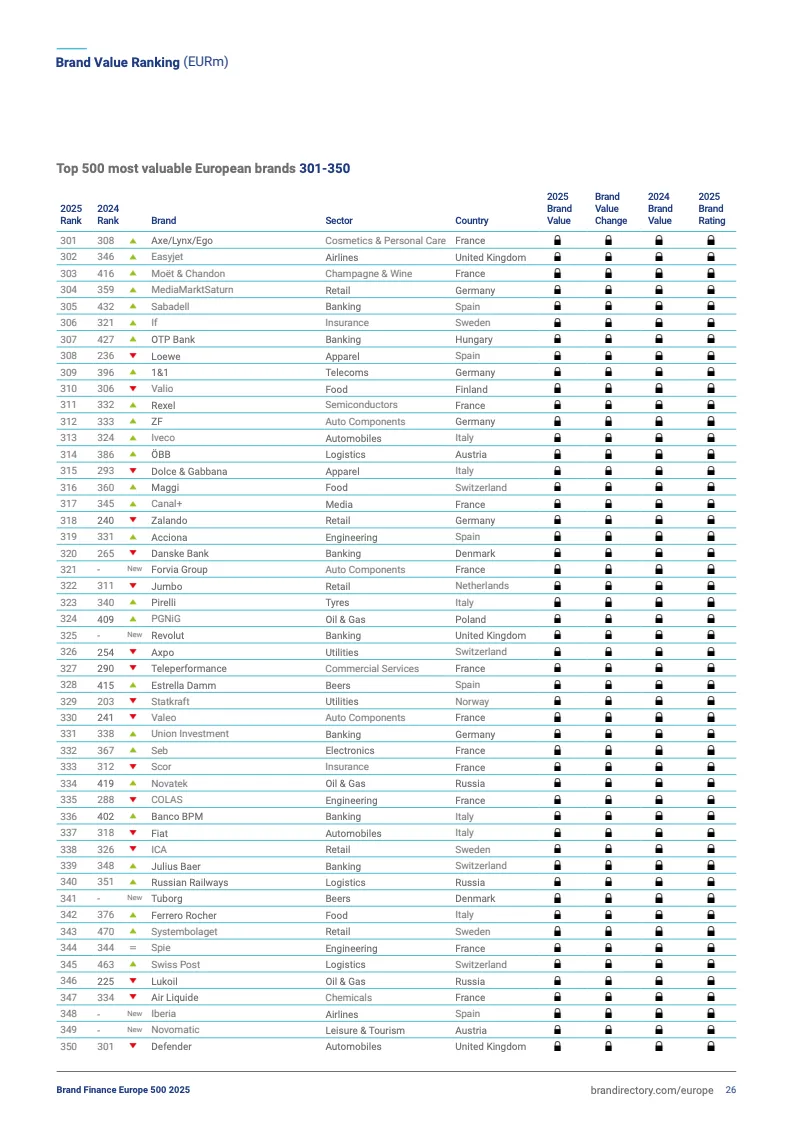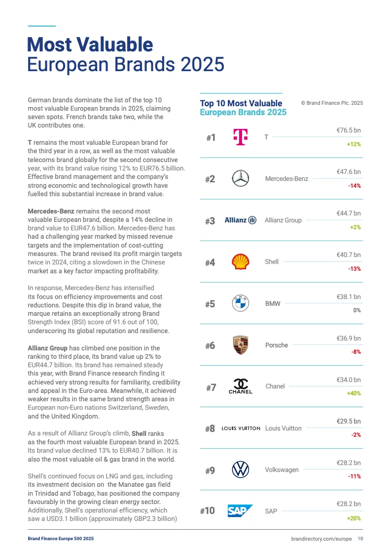 2025欧洲品牌500强前十排名
