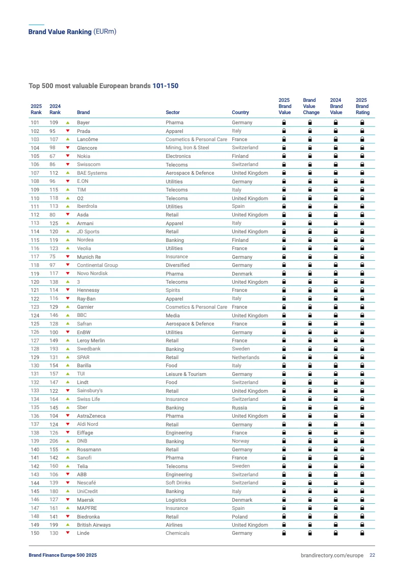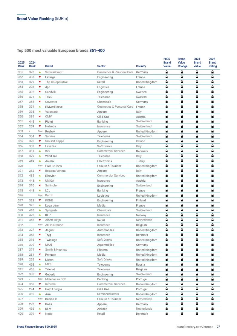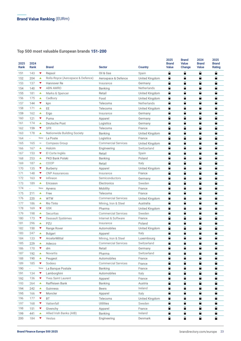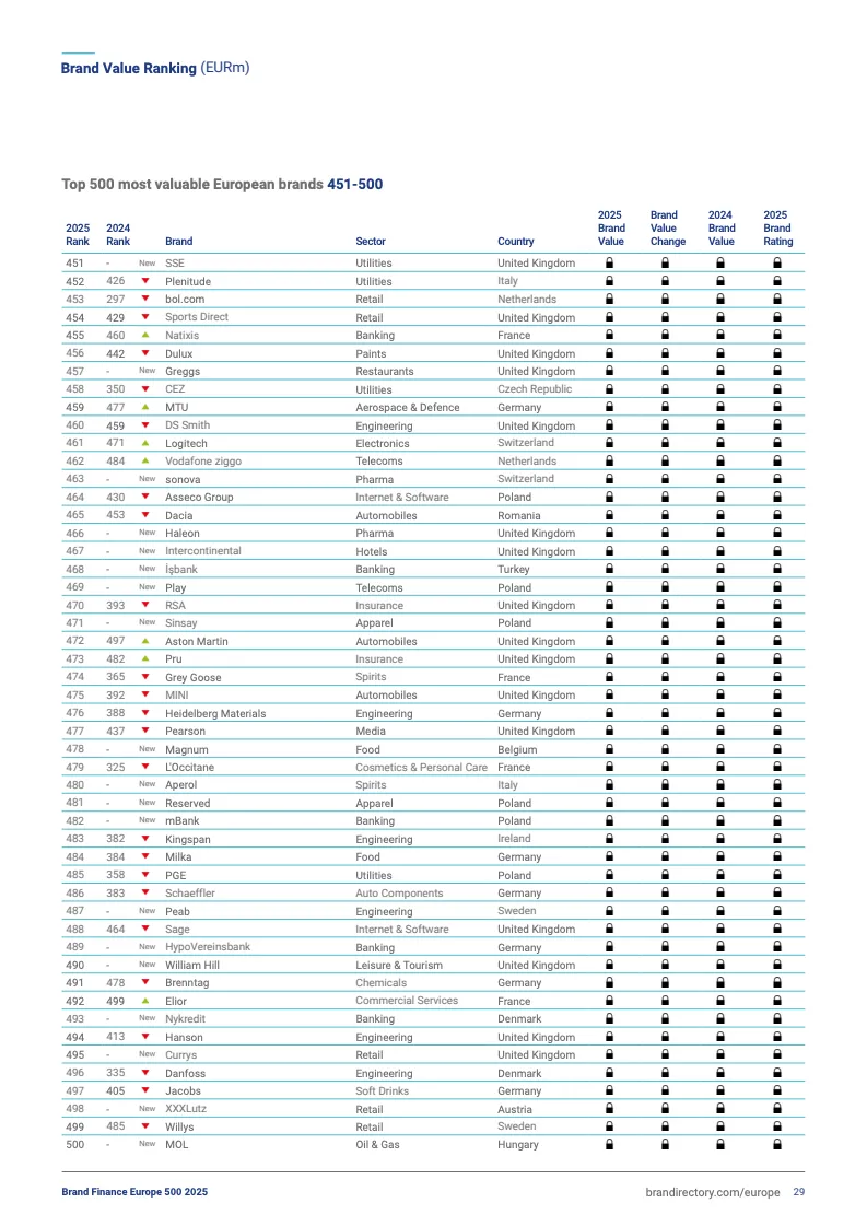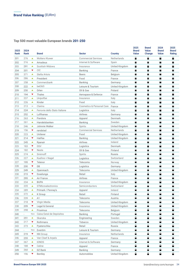2025欧洲品牌500强前十排名