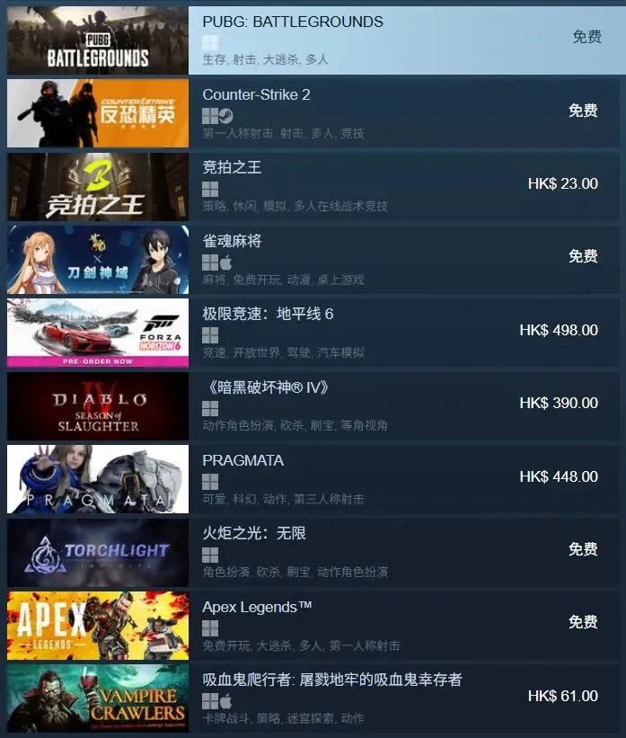 以下标签: "免费开玩", "多人", "单人", "独立", "抢先体验", "在线合作", "合作", "跨平台多人", "大型多人在线",未计入统计数据。