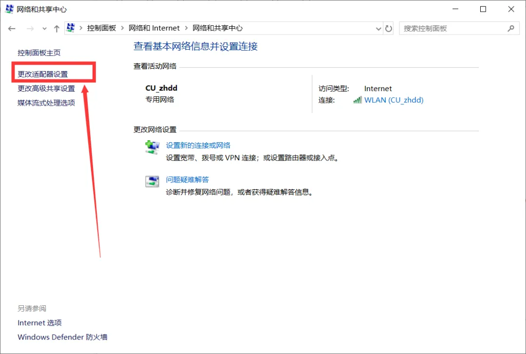 然后在左侧点击“更改适配器设置”。