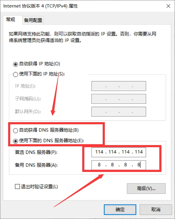 进去之后找到"DNS服务器"那一栏——通常有两个框:"DNS服务器"和"备用DNS服务器"。这两个框里的数字要手动改。