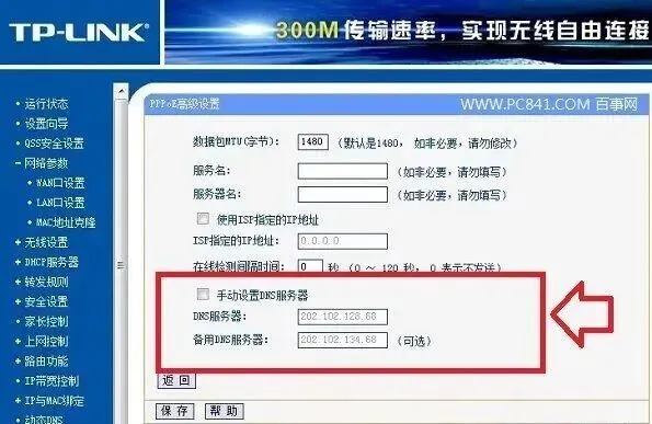 填完之后,勾选上"手动设置DNS服务器",然后点底部的"保存"按钮。