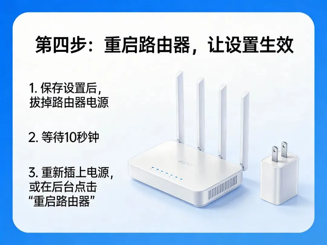 第四步:重启路由器,让设置生效