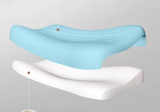 采用蝶形外观设计,中间内凹,两侧加高呈“蝴蝶翅膀”状。仰睡时内凹区贴合头部,颈椎区提供基础承托,避免颈部悬空.