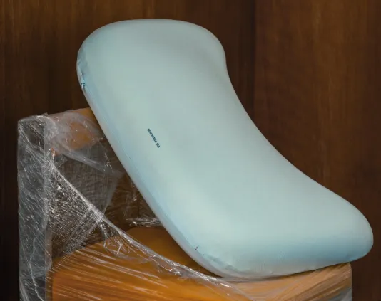产品多采用基础人体工学结构,带有微曲面设计。整体造型基本贴合大众头颈轮廓,仰睡、侧睡时能提供基础支撑,填充密度适中。