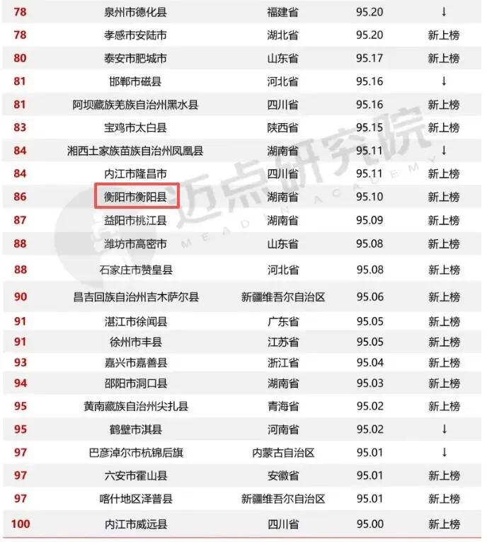 4月24日,迈点研究院发布《2026年3月中国县域旅游传播力榜单》,湖南共8个县市跻身全国百强,衡阳市衡阳县成功上榜。