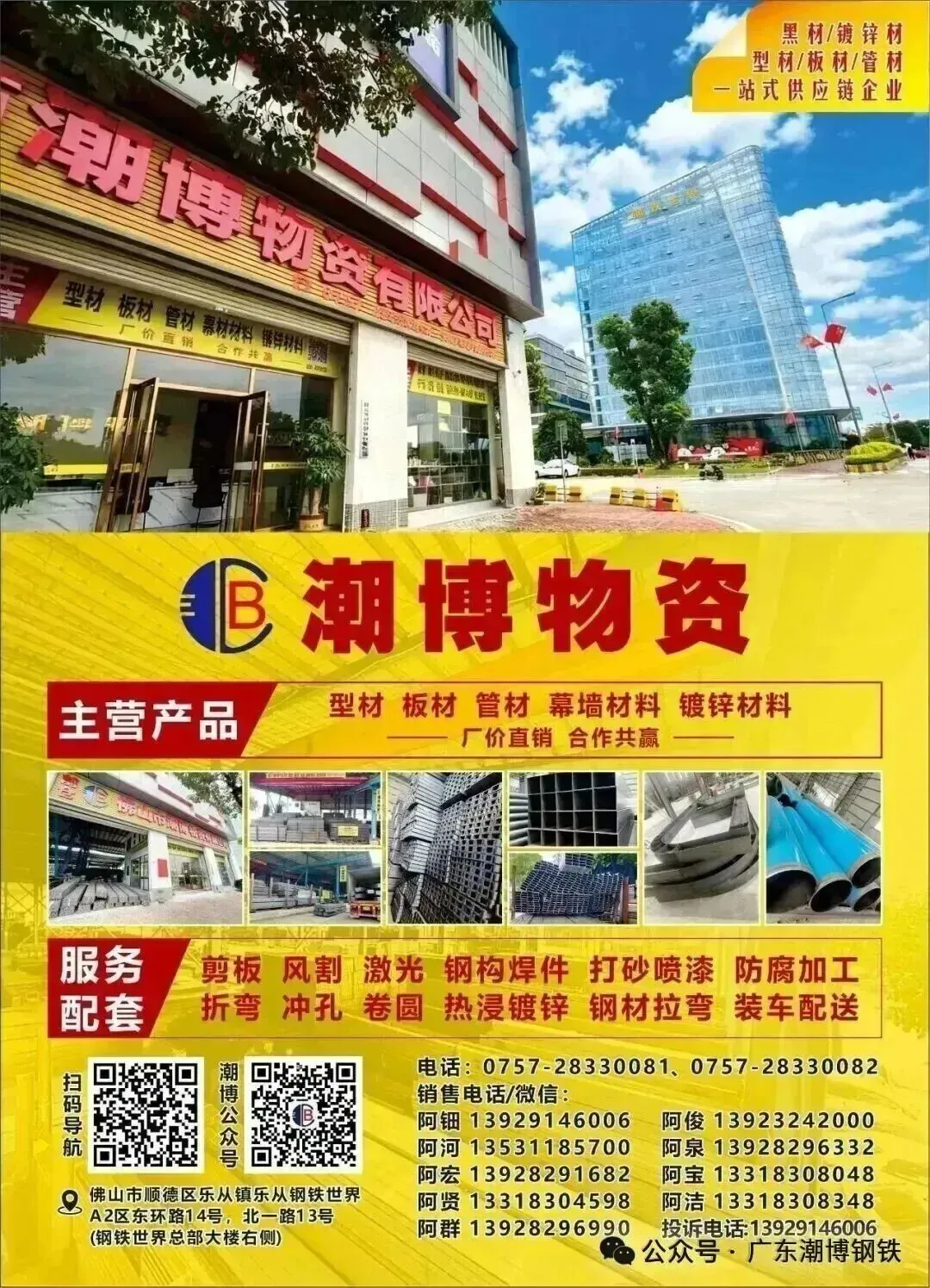 佛山市潮博物资有限公司,始终以专业钢材服务商为定位,专注打造一站式钢材采购・加工・配送全链条服务,是珠三角地区口碑优良、服务高效的钢材供应企业。公司坐落于广东省佛山市顺德区乐从镇乐从钢铁世界 A2 区东环路 14 号(钢铁世界总部大楼右侧),扎根华南钢铁核心集散地,依托乐从钢铁世界产业集群优势,深耕钢材销售与配套服务多年,以专业、高效、省心的服务赢得广大客户长期支持与信赖。