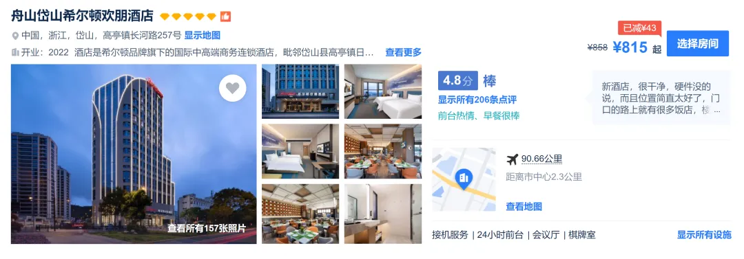 奢华岱山地标Hilton集团酒店:舟山岱山希尔顿欢朋酒店