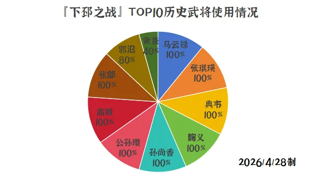 同时,花花也为大家整理了一下本次下邳之战前十玩家的历史武将使用情况供大家参考:其中,“武将名 x%”代表该历史武将在本次战役的前十玩家中使用率为x%。